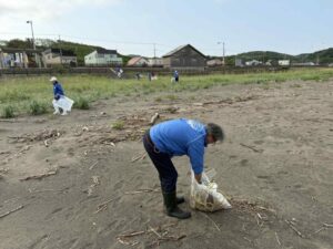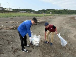 留萌の海水浴場で気持ちよく過ごしていただくため、心を込めてゴミ拾い