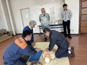 勝原係長と遠藤消防士をお迎えして『AEDを学ぼう』と題し、実践も交え、ご指導頂きました。
