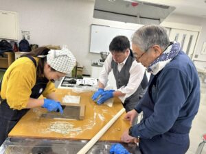 講師にフタバ製麺の仲田社長をお迎えしてそば打ちを体験させてもらいました