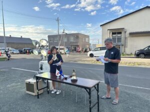 L.原田則子会長の会社主催で行われるイベント会場の横で第1480回例会(納涼例会)を開催しました。