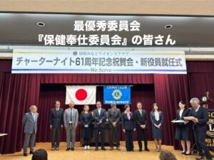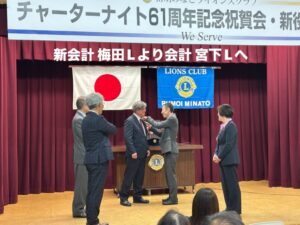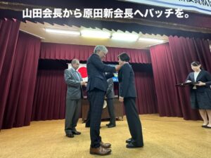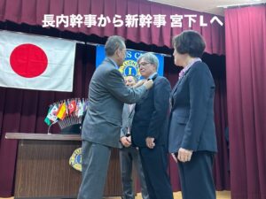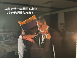 そして最後に旧役員から新三役へライオンバッヂの交換が行われ、新たにL.原田則子が第62代会長として就任されました。