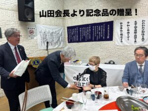 会の最後に山田会長より一年間支えてくれたライオンパートナーの皆さんに記念品を贈られました。